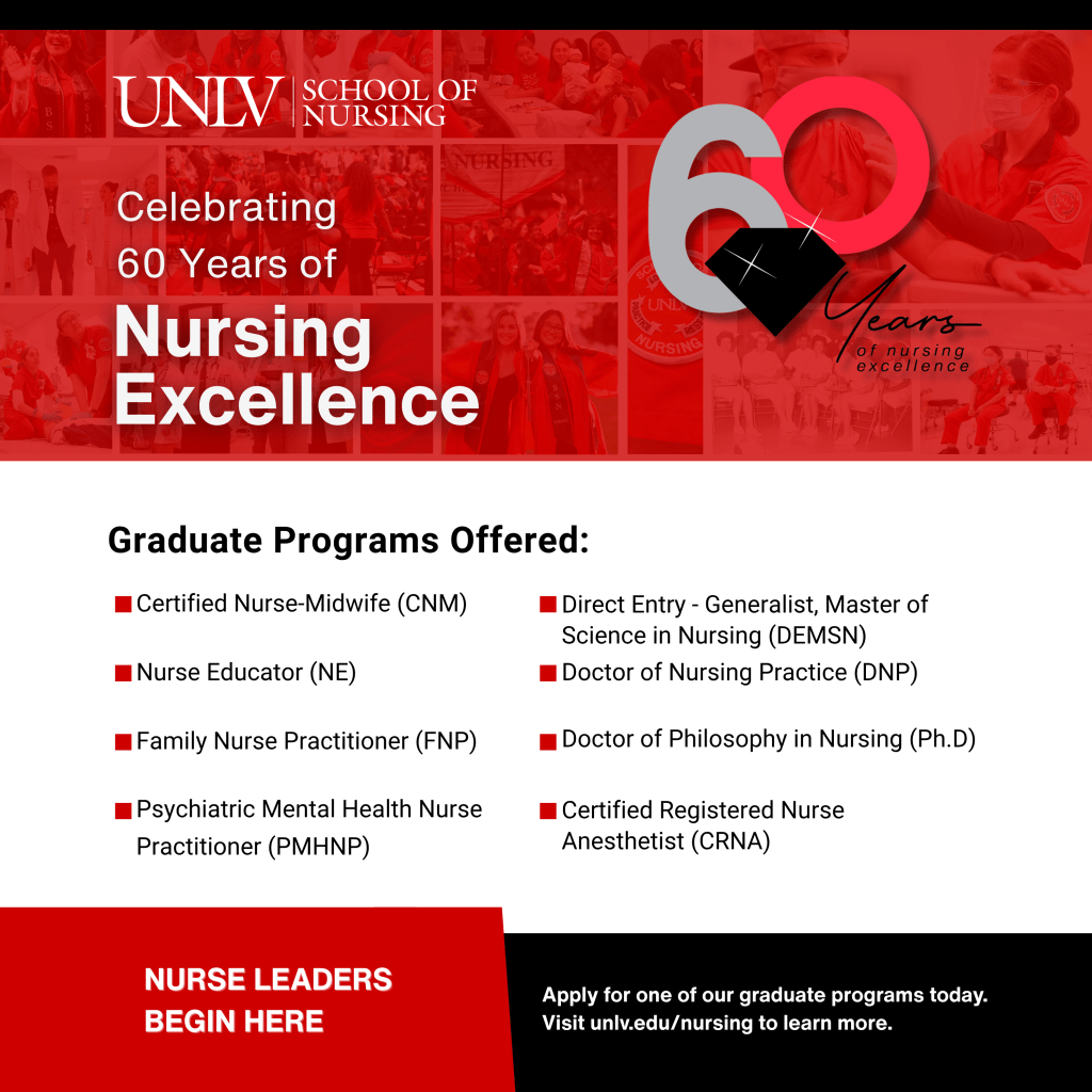 UNLV School of Nursing Ads Full Page Print Ad Half Page Print Ad 1080×1350 Social Media Post 1200×1200 Social Media Post Print and Digital Ads , October 2025, Designed in Canva.